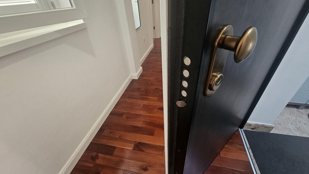 The property is equipped with underfloor heating, air conditioning, a security door, a storage room in the basement, and a parking space outside.
