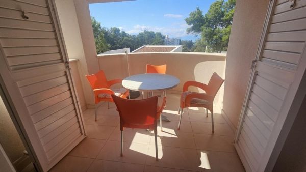 This offer features a furnished apartment with a balcony on the top floor of a well-maintained building in an attractive location near the sea in Malinska, Island of Krk.