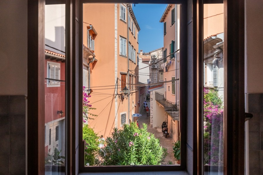One of the bedrooms offers a spectacular sea view, while the kitchen and the second bedroom overlook the picturesque streets of Rovinj. The apartment is being sold fully furnished.