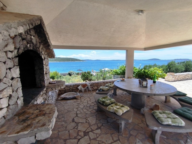 This property consists of a small house with an additional outbuilding in a prime seafront location in the Trogir region, Dalmatia.