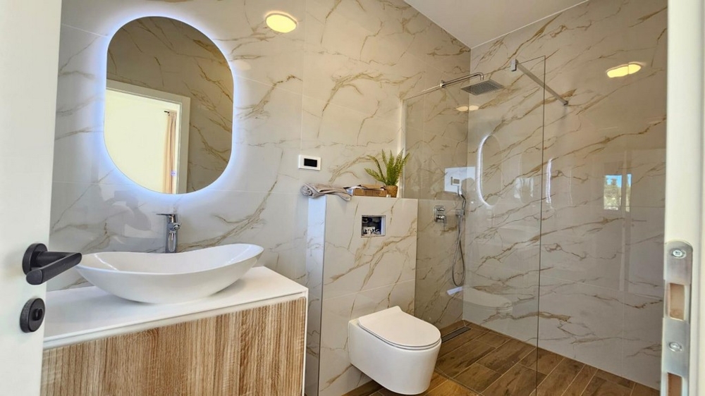 The villa was built in 2025 on a plot of approx. 1,160 m² situated above the coastal road. It offers a living area of about 250 m² with the following layout: