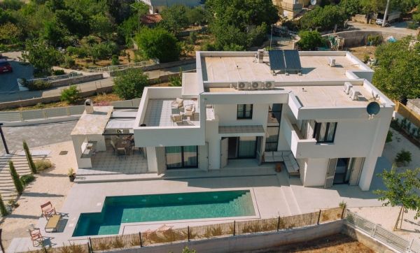 The villa was built in 2024/2025 on a 1,000 m² plot and offers approx. 200 m² of living space, distributed over two floors: