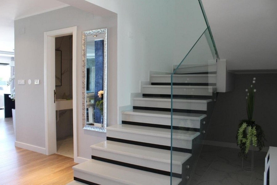 The spacious rooftop terrace offers beautiful sea views. The villa is equipped to a very high standard and includes a garage as well as outdoor parking spaces.