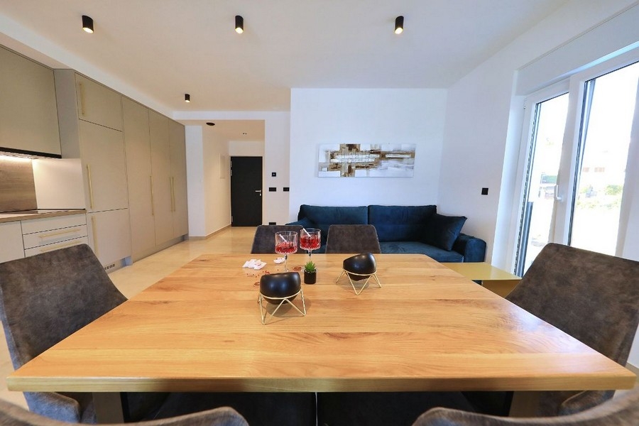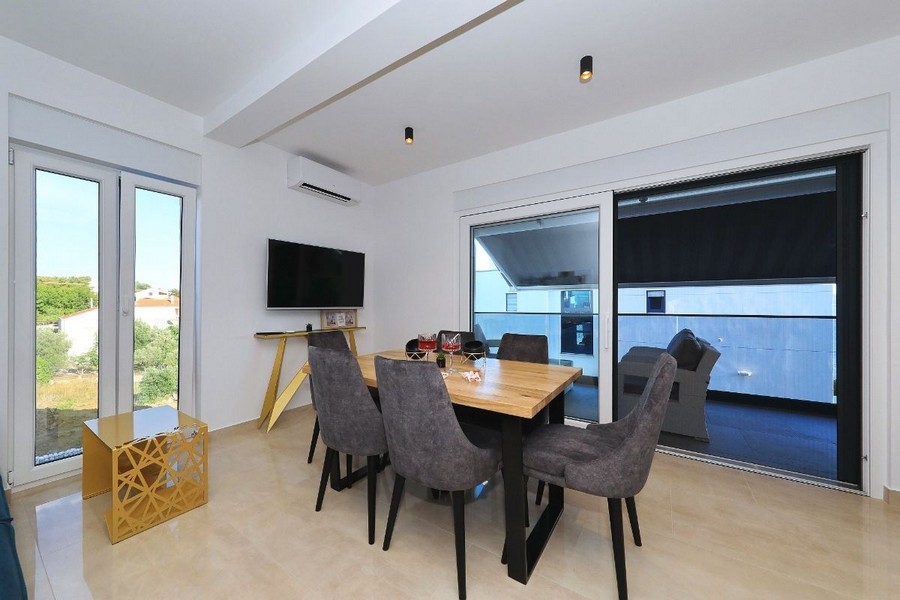 This offer is a modern villa with four residential units in a privileged location near the sea in Maslenica, Zadar region, North Dalmatia.