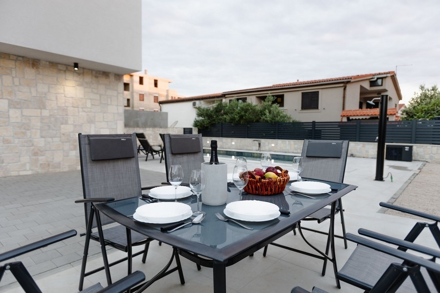 Mandre, Island of Pag: Modern semi-detached house with swimming pool