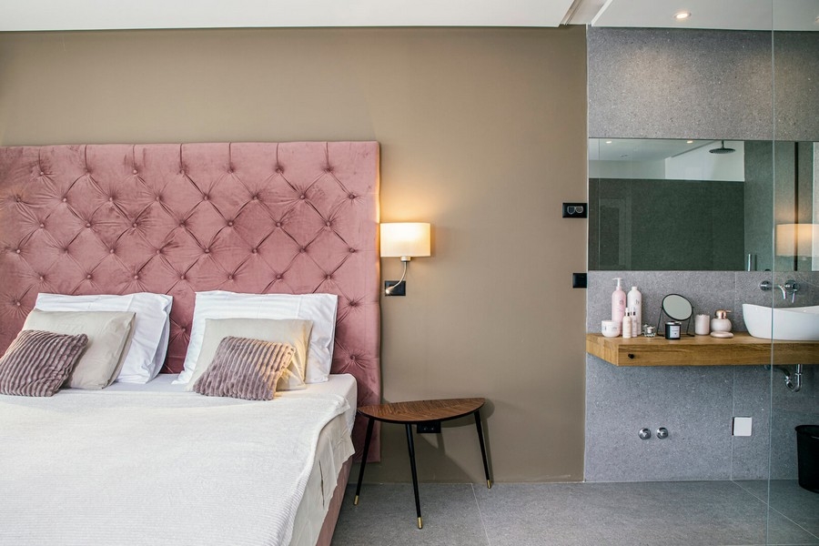 Ground floor: living room with dining area and kitchen, bedroom with bathroom Upper floor: 3 bedrooms, each with a bathroom The villa is offered for sale including the high-quality furnishings. Outside there is a heated infinity swimming pool, terraces and a summer kitchen.