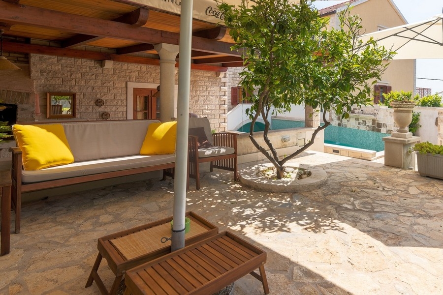 This offer is an exceptional property with a renovated stone house, swimming pool and sea views in the second row to the seashore in the coastal town of Sumartin on the island of Brač in Dalmatia. The property is located on a plot of approximately 787 m² and offers a total area of approximately 550 m². The property consists of a fully renovated traditional stone house as well as an additional building with further potential for use.
