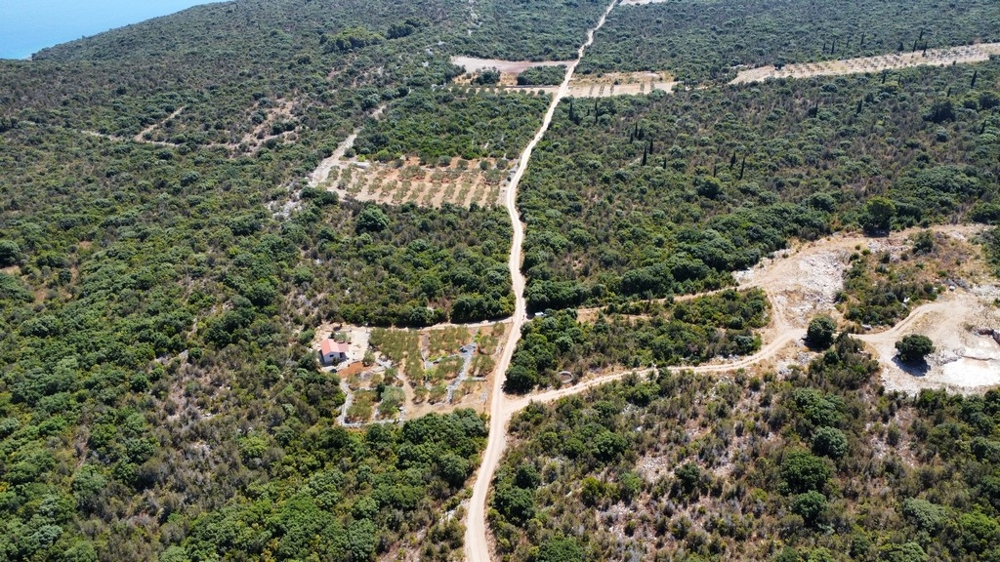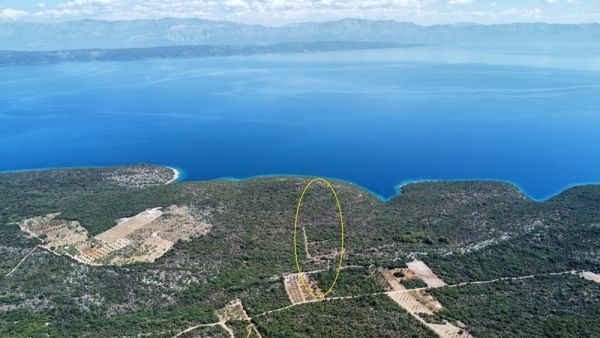 The property is located near the town of Loviste and offers a beautiful sea view. It is accessible via a gravel road and contains around 20 olive trees.